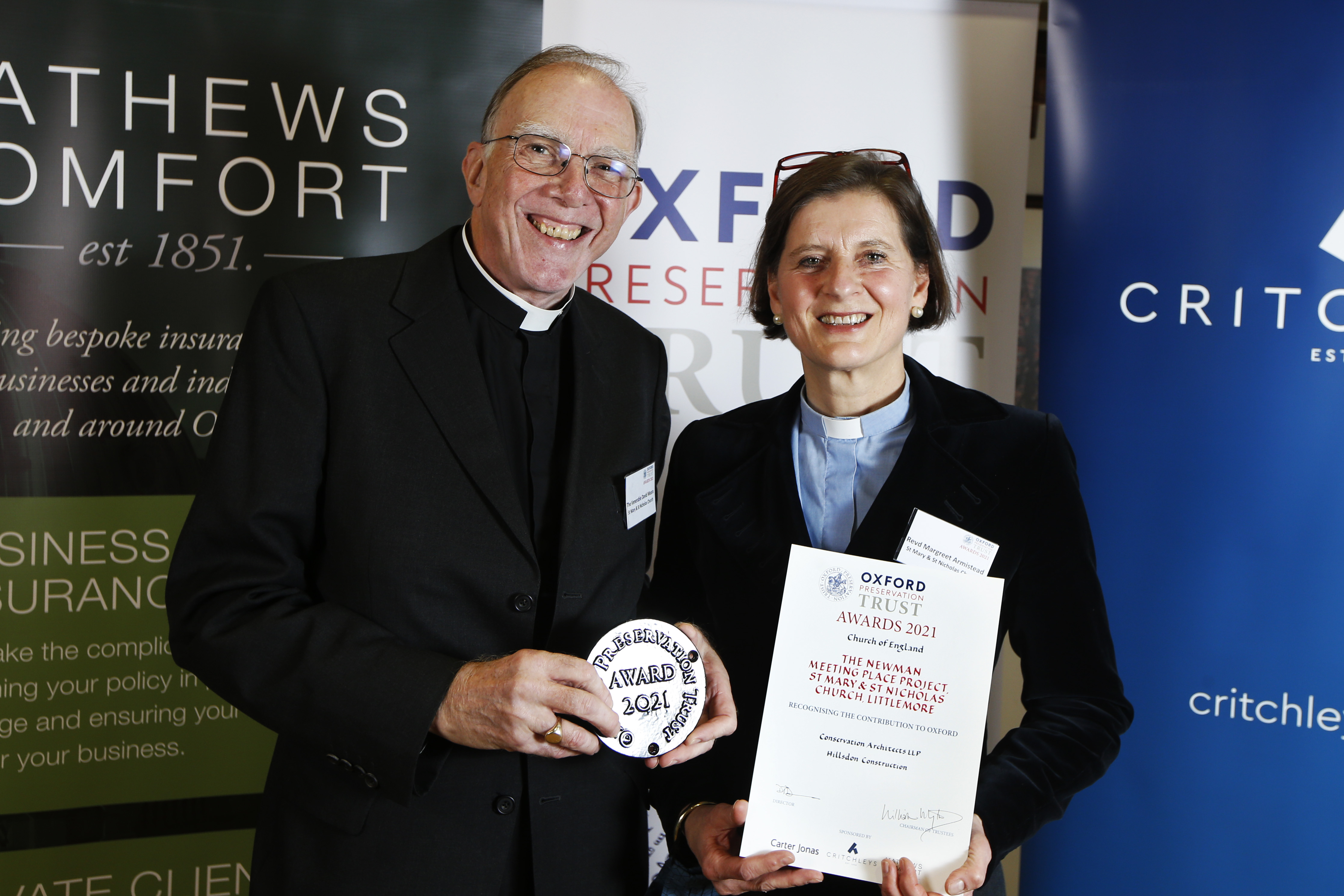 Recognising small projects is a special part of the Awards with plaques going to the restoration of the 550-year-old Gallery Window & Tracery at 26a East St. Helen’ Street Abingdon and to the Newman Meeting Place Project at St Mary & St Nicholas Church, Littlemore which adds to the community there. Public Realm also featured in the Greening Jericho plaque, and to Broad Meadow which brought liveliness and hope for the future of Broad Street for our summer enjoyment.